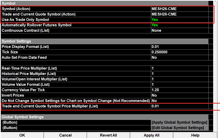 With some brokers their symbols setup is a tad different than Topstep's, at times an ES/MES contract for 6844.50 may display as 68.44 when being routed over. What we'll do is simply translate the Sierra symbols to relay the correct price for Topstep. This is done as follows: